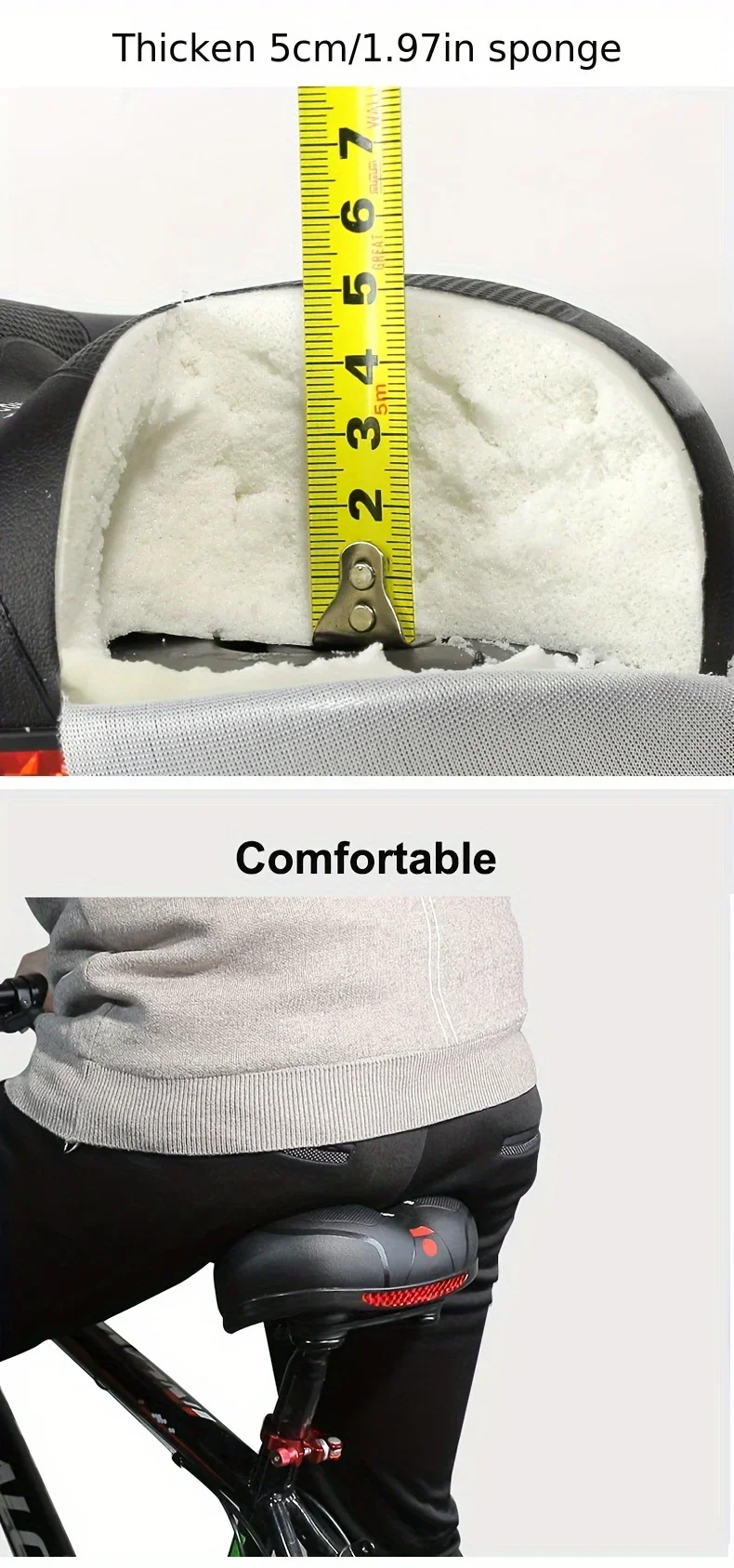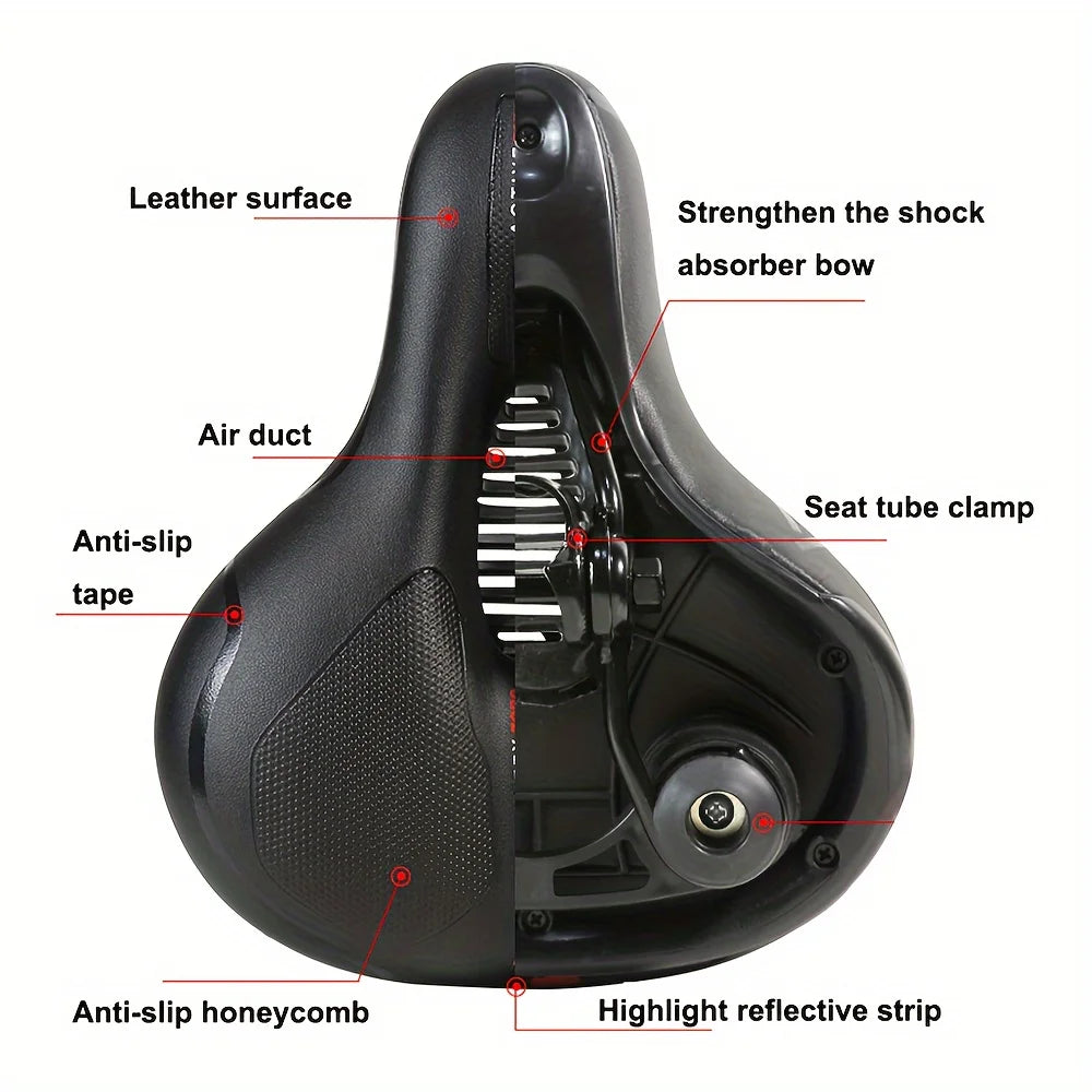 Comfortable large rear bicycle seat: The saddle design provides ample support and cushioning for your hips, ensuring maximum comfort during long-distance rides.
